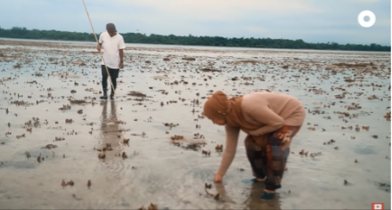 Image 6: Screenshot of a video showcasing the Orang Laut’s foraging practices. Here, Firdaus’s mother Nooraini is looking for shellfish.[43]